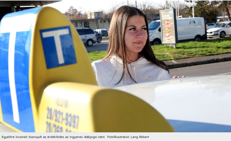 „Szeptembertől indult a középiskolákban a jogosítvány szerzéshez szükséges ingyenes KRESZ- és egészségügyi oktatás. Egyelőre azonban kicsinek bizonyult az érdeklődés az ingyenes diákjogsi iránt.