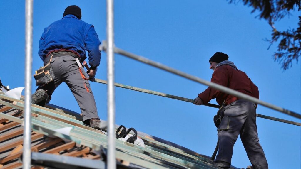 Vállalkozók újítják fel a tetőt. Fotó: Pesti Tamás