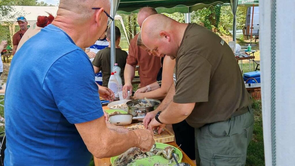 A horgászegyesület nyilván olyan halakból készítette a halászleveket, amiket maguk fogtak ki az általuk kezelt tavakból, tehát a Kis és Nagy-bókból. – Csuka, süllő, keszeg, kárász, ponty és még törpe harcsa is került a lébe. Közel 50 kilogramm halat hoztunk ma le ide a Dráva partra, és közel 80 adag halászlevet tudunk majd felajánlani az érdeklődők részére – mondta el Glaván Tamás.