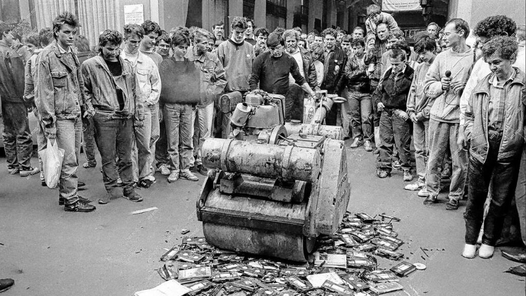 A számtalan érdekes és értékes helytörténeti mozzanatot feldolgozó Régi Pécs nevű Facebook-oldal a napokban tett közzé egy fotót, amin úthenger zúz össze videókazettákat 1990 novemberében.