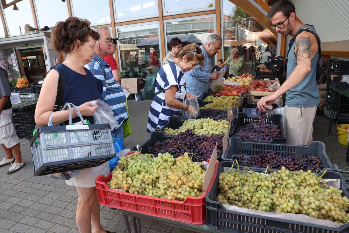Roskadoznak a Kaposvári Nagypiac standjai a szőlőtől, az olasz fürtök mellett természetesen már a hazai szőlőt is kínálták a kaposvári árusok, de egyéb közkedvelt gyümölcsök is várták a vásárlókra. Aki most főzne még csak be, annak sem kell aggódnia, hiszen a paradicsomot igazán jó áron kínálták a piacosok.