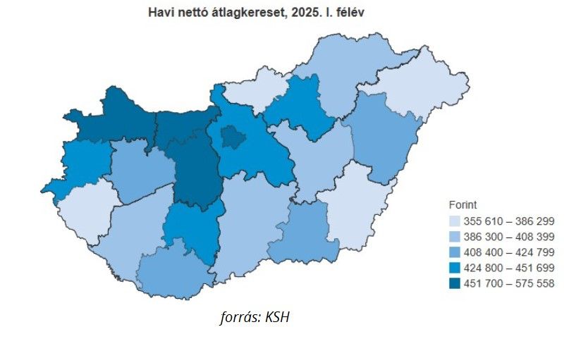 2025 első félévében a kedvezmények figyelembevételével számított nettó átlagkereset országosan 9 százalékkal emelkedett. A legnagyobb növekedést Tolna (10,8%) és Szabolcs-Szatmár-Bereg (10,4%) vármegyékben mérték, míg a legkisebbet Győr-Moson-Sopronban (7,1%) és Nógrádban (7,7%). Zala megye ebben a tekintetben nem került az élvonalba, ami arra utal, hogy bár a forgalom élénkül, a bérek növekedése mérsékeltebb, mint más térségekben. A megyei nettó átlagkereseti adatokból egyértelműen látszik, hogy továbbra is jelentős regionális különbségek jellemzik Magyarország bérviszonyait.